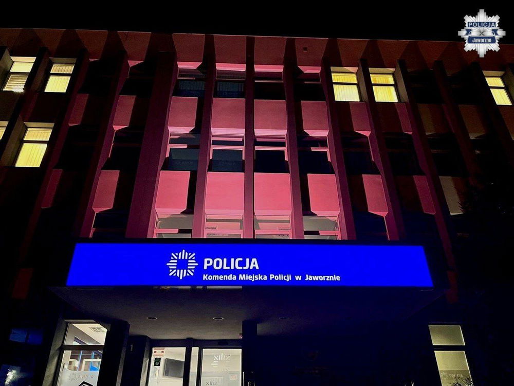 Jaworzno policja podświetliła komendę w obronie dzieci