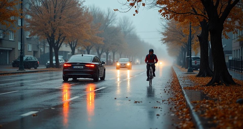 Opady, mgła, liście i szybciej zapadający zmrok zwiększają ryzyko na drogach. Sprawdź opony i oświetlenie, dostosuj prędkość i używaj odblasków by bezpiecznie poruszać się po drogach tej jesieni.