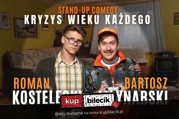 | Jaworzno | Kostelecki i Młynarski - Kryzys wieku każdego | 27.11.25, g. 19:00dodano 2025-09-03 19:14:20 Stand-up Trasa "Kryzys wieku każdego". Na scenie: Osoby, które będą przeszkadzać podczas wydarzenia zostaną wyproszone bez zwrotu pieniędzy za bilet. Bilety do nabycia na: KupBilecik.plStand-up Trasa "Kryzys wieku każdego": Roman Kostelecki i Bartosz Młynarski artyści: Roman Kostelecki, Bartosz MłynarskiRoman Kostelecki (27 lat) – niby młody, a już zmęczony życiem. Wciąż pyta: „czy to już, czy jeszcze nie”. Bartosz Młynarski (42 lata) – mówi, że ma kryzys wieku średniego… ale to już trzeci z kolei, więc chyba po prostu lubi, bo częściej się uśmiecha. Dwóch typów, dwa pokolenia, jeden wniosek: kryzys to nie etap – to styl życia. Przyjdź się pośmiać, zanim wpadniesz w swój następny! Bilety do nabycia na: KupBilecik.pl |
