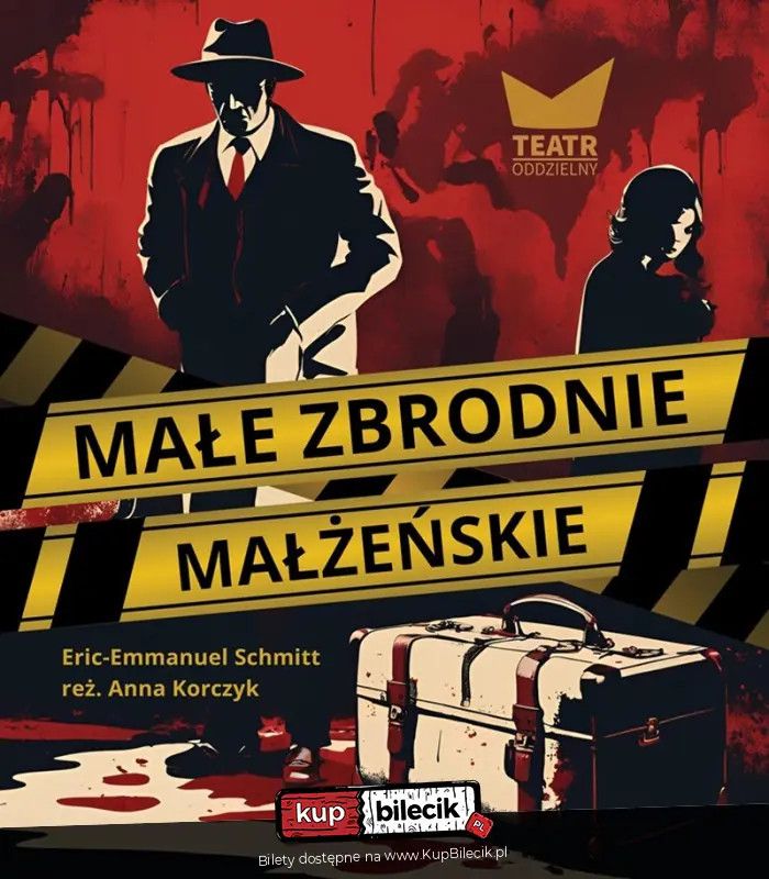 bilety: W tej wyjątkowej inscenizacji, Teatr Oddzielny przenosi nas w świat małżeństwa, które po piętnastu latach wspólnego życia staje przed wyzwaniem odbudowy relacji. Czy amnezja głównego bohatera, wynikająca z tajemniczego wypadku, jest prawdziwym problemem, czy może to kłamstwa i ukryte prawdy są źródłem ich trudności? "Małe zbrodnie małżeńskie" to opowieść pełna zaskakujących zwrotów akcji, głębokich refleksji i emocji, które poruszają do głębi. Widzowie zostaną wciągnięci w intelektualną grę, gdzie każdy dialog i każda scena odkrywają nowe warstwy skomplikowanych relacji między mężem a żoną. Małe zbrodnie małżeńskie - Teatr Oddzielny artyści: Teatr OddzielnyW tej wyjątkowej inscenizacji, Teatr Oddzielny zabiera widzów na emocjonalną podróż, śledząc historię pary, która po piętnastu latach małżeństwa staje przed wyzwaniem odbudowy relacji. Główny bohater zmaga się z amnezją po tajemniczym wypadku, co prowadzi do pytania: czy to ona stanowi prawdziwy problem, czy raczej kłamstwa i ukryte prawdy Ten pełen zaskakujących zwrotów akcji i głębokich refleksji spektakl wciąga widzów w intelektualną grę, odkrywając kolejne warstwy skomplikowanych relacji małżeńskich z każdym dialogiem i sceną. Czy pisarza ogranicza jego własny egotyzm, czy może to podejrzliwość jego żony jest przeszkodą w ich porozumieniu A może nasze własne, nigdy nie wypowiedziane wyobrażenia o związku wpływają na te trudności Spektakl zręcznie balansuje między powagą a humorem, bawiąc, wzruszając i skłaniając do refleksji nad naszymi własnymi relacjami. Zakończenie tej historii jest nieoczekiwane i pozostawia widza z głębokimi przemyśleniami i emocjami. Bilety do nabycia na: KupBilecik.pl |
